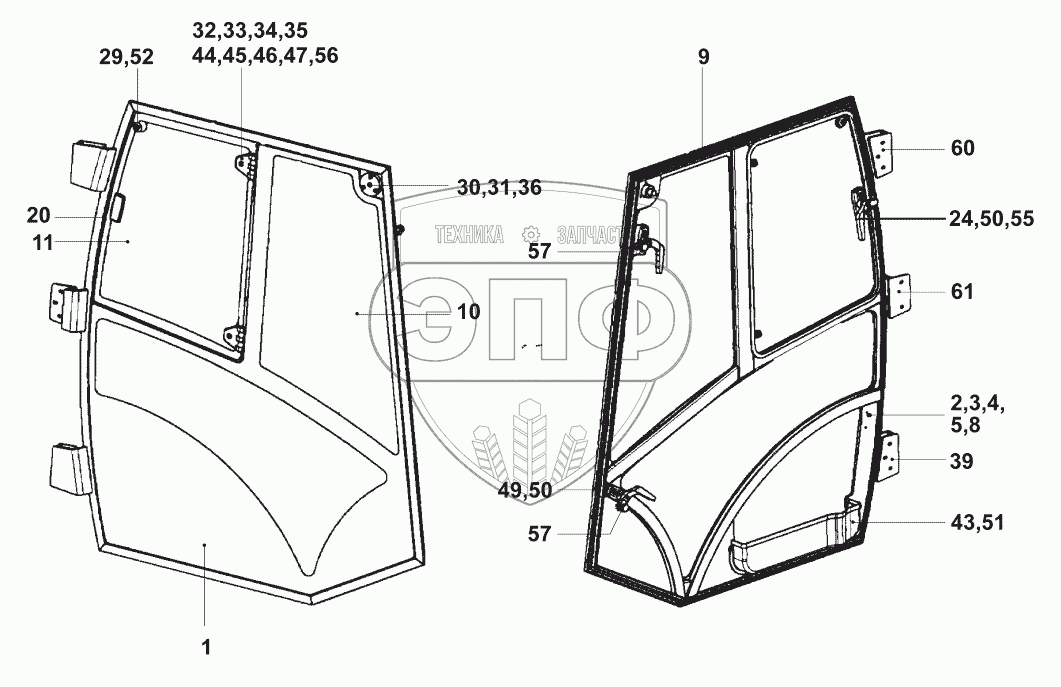Каталог запасных частей к технике: JCB VM-132D/PD. Двери кабины/ROPS-Cab