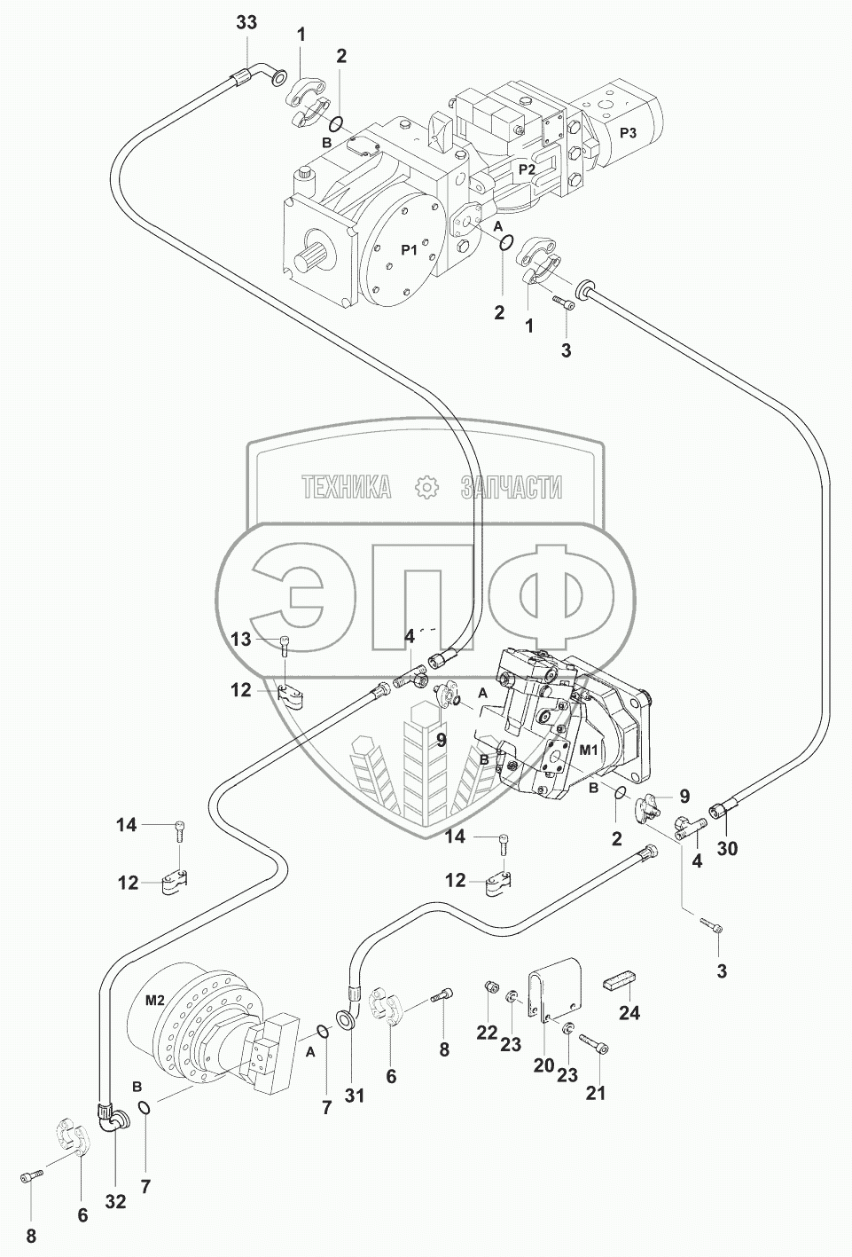 Каталог запасных частей к технике: JCB VM-132D/PD. Гидросистема/Propulsion