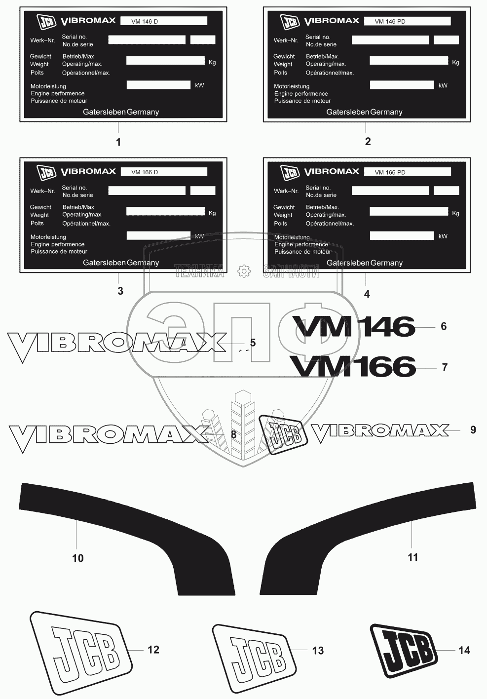 Каталог запасных частей к технике: JCB VM-146D/PD. Таблички