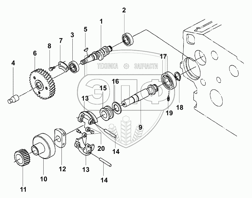 Каталог запасных частей к технике: JCB VM-1500-1601100. Вал распределительный