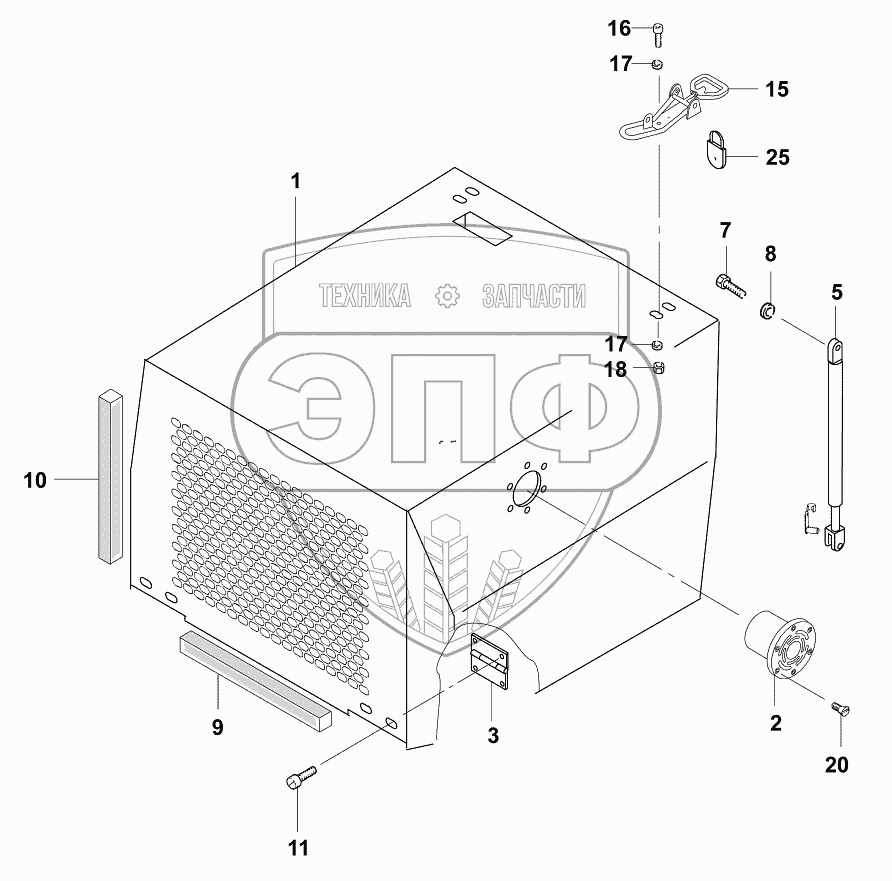 Каталог запасных частей к технике: JCB VM-1500-1601300. Капот двигателя
