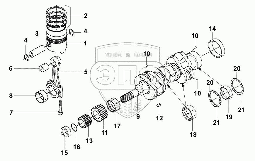 Каталог запасных частей к технике: JCB VM-1500-1601300. Вал коленчатый, поршень