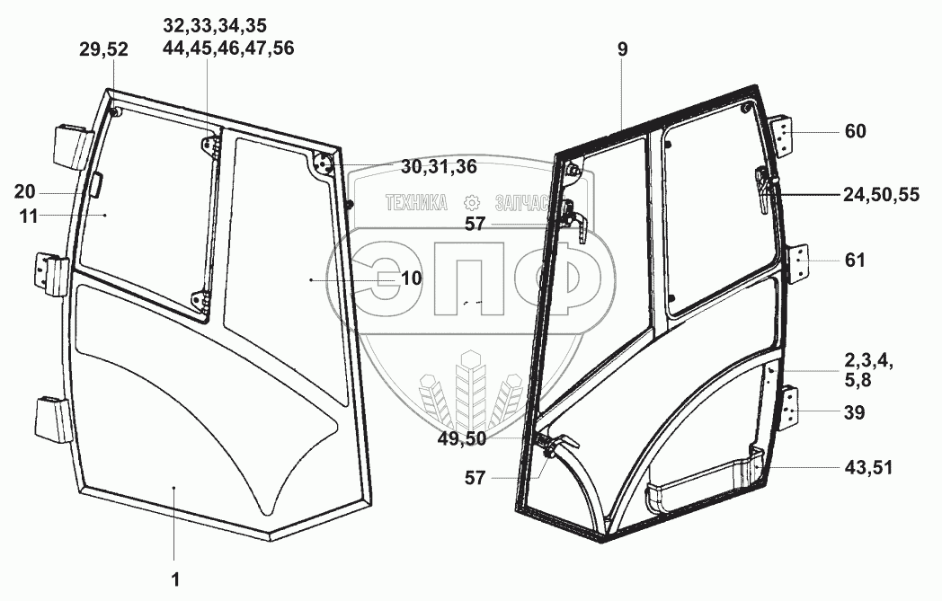 Каталог запасных частей к технике: JCB VM-200D/PD. Двери кабины