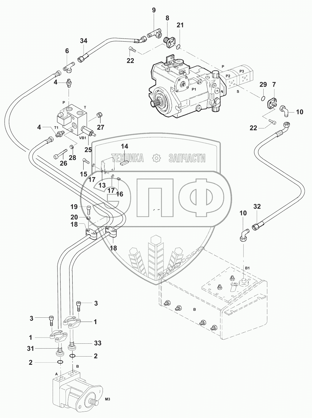 Каталог запасных частей к технике: JCB VM-46D/PD. Гидросистема/Drive