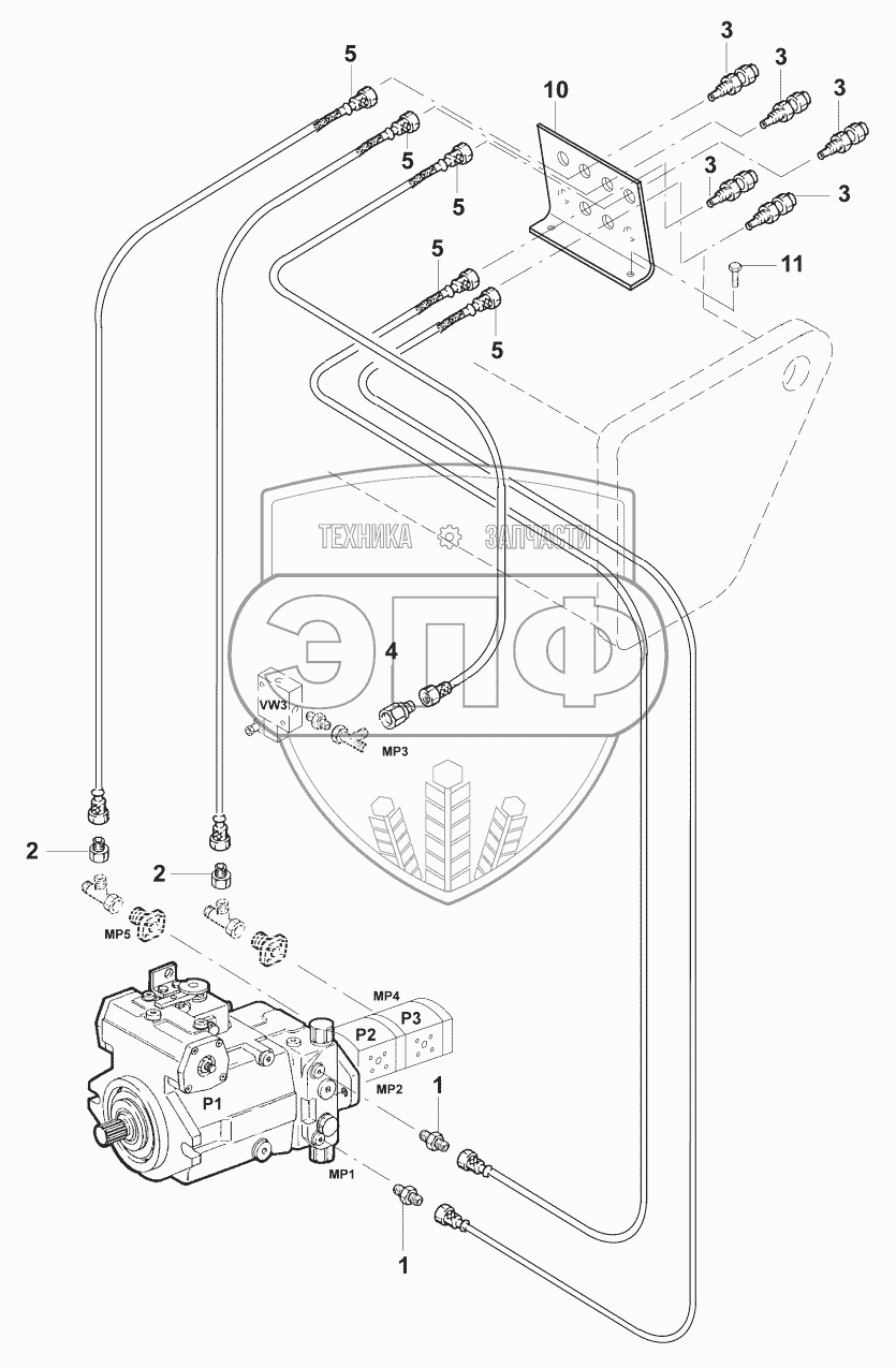 Каталог запасных частей к технике: JCB VM-46D/PD. Трубопроводы/Hydraulic measuring points