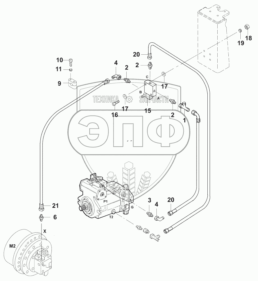 Каталог запасных частей к технике: JCB VM-46D/PD. Трубопроводы управления/Control line