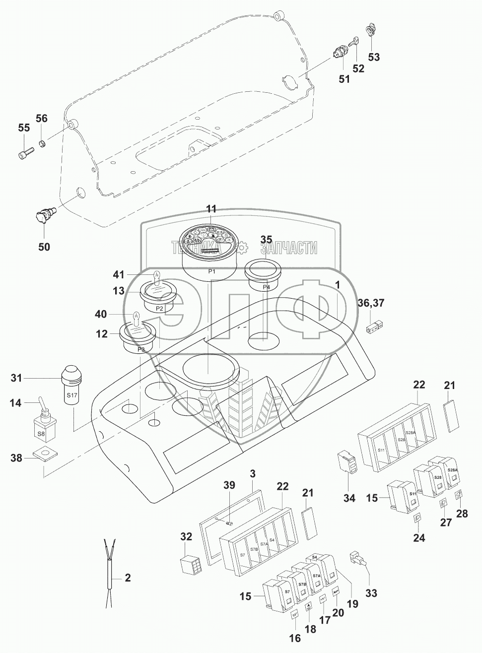 Каталог запасных частей к технике: JCB VM-75D/PD. Панель приборов/Instrument panel