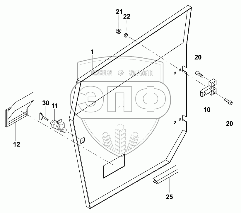 Каталог запасных частей к технике: JCB VMТ-270/280. Дверца правая/Door, right