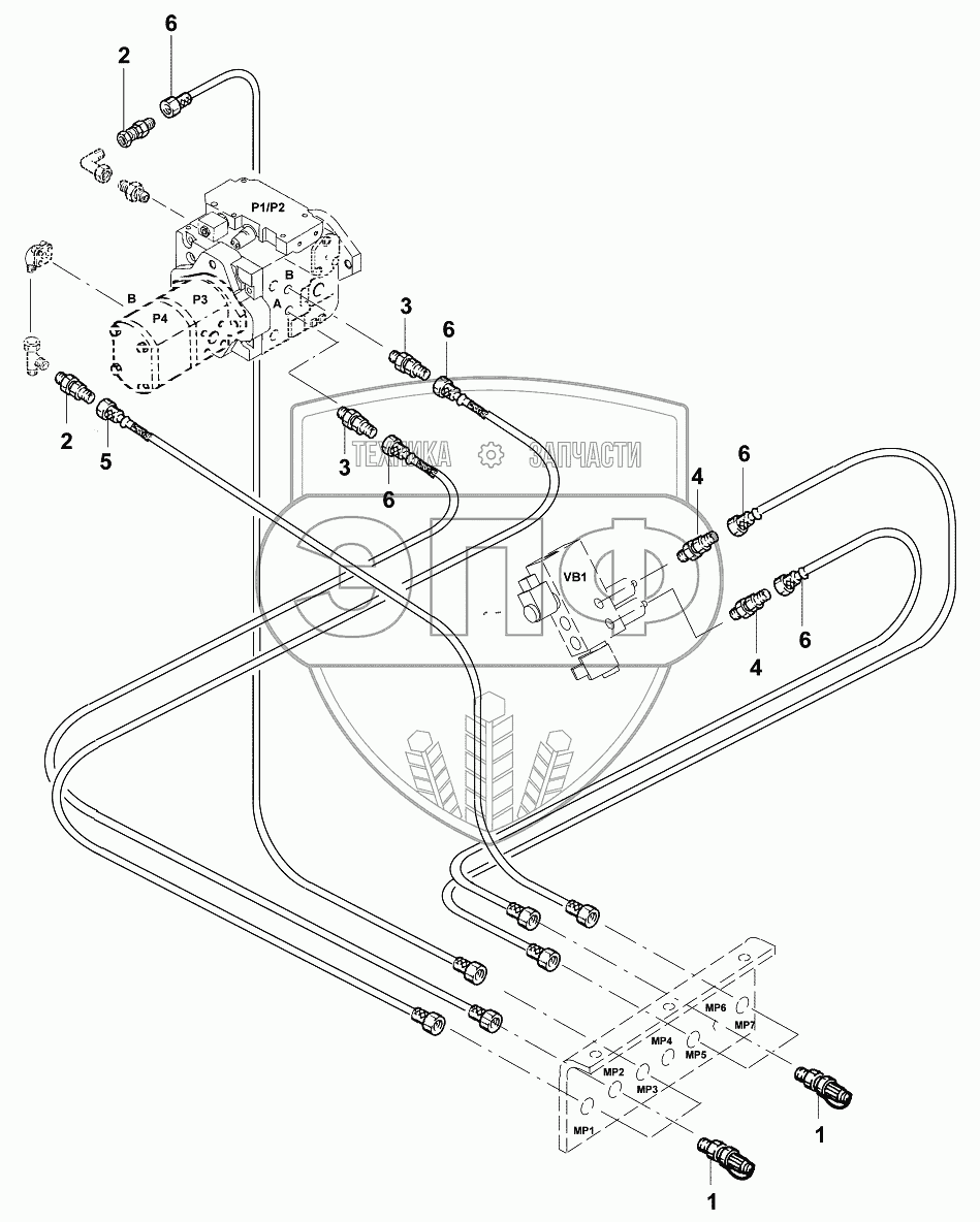 Каталог запасных частей к технике: JCB VMТ-270/280. Трубопроводы/Hydraulic measuring points