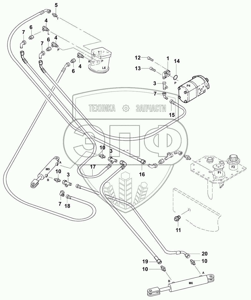 Каталог запасных частей к технике: JCB VMТ-390/400 (480/500). Трубопроводы управления/Steering
