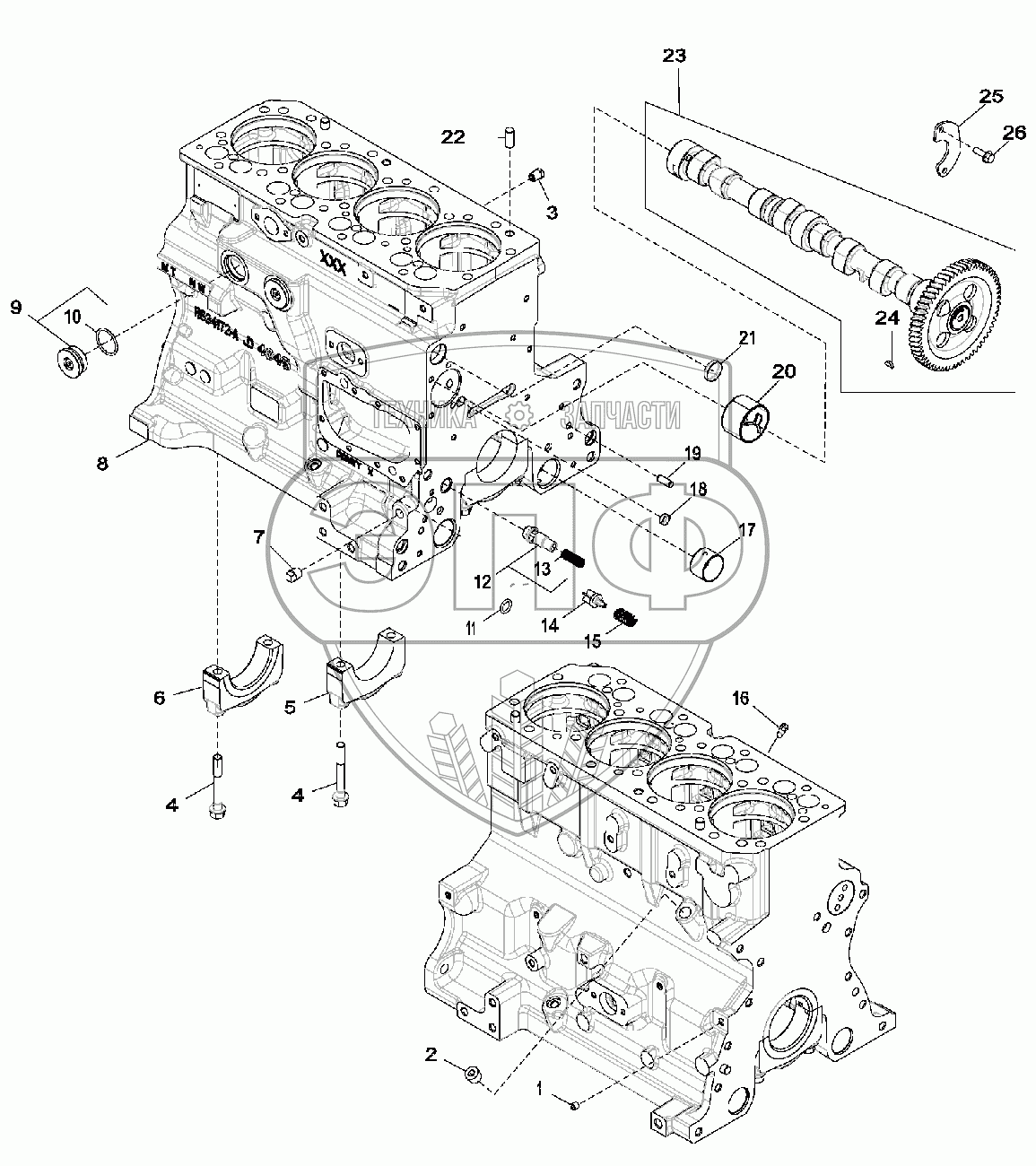 Каталог запасных частей к технике: John Deere JD-315SK(часть 1). Блок цилиндров