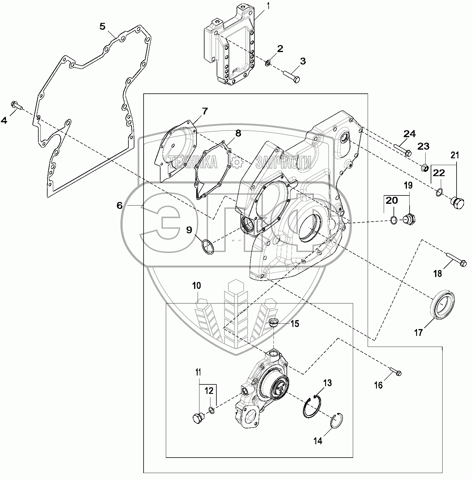 Каталог запасных частей к технике: John Deere JD-315SK(часть 1). Крышка распределительной шестерни