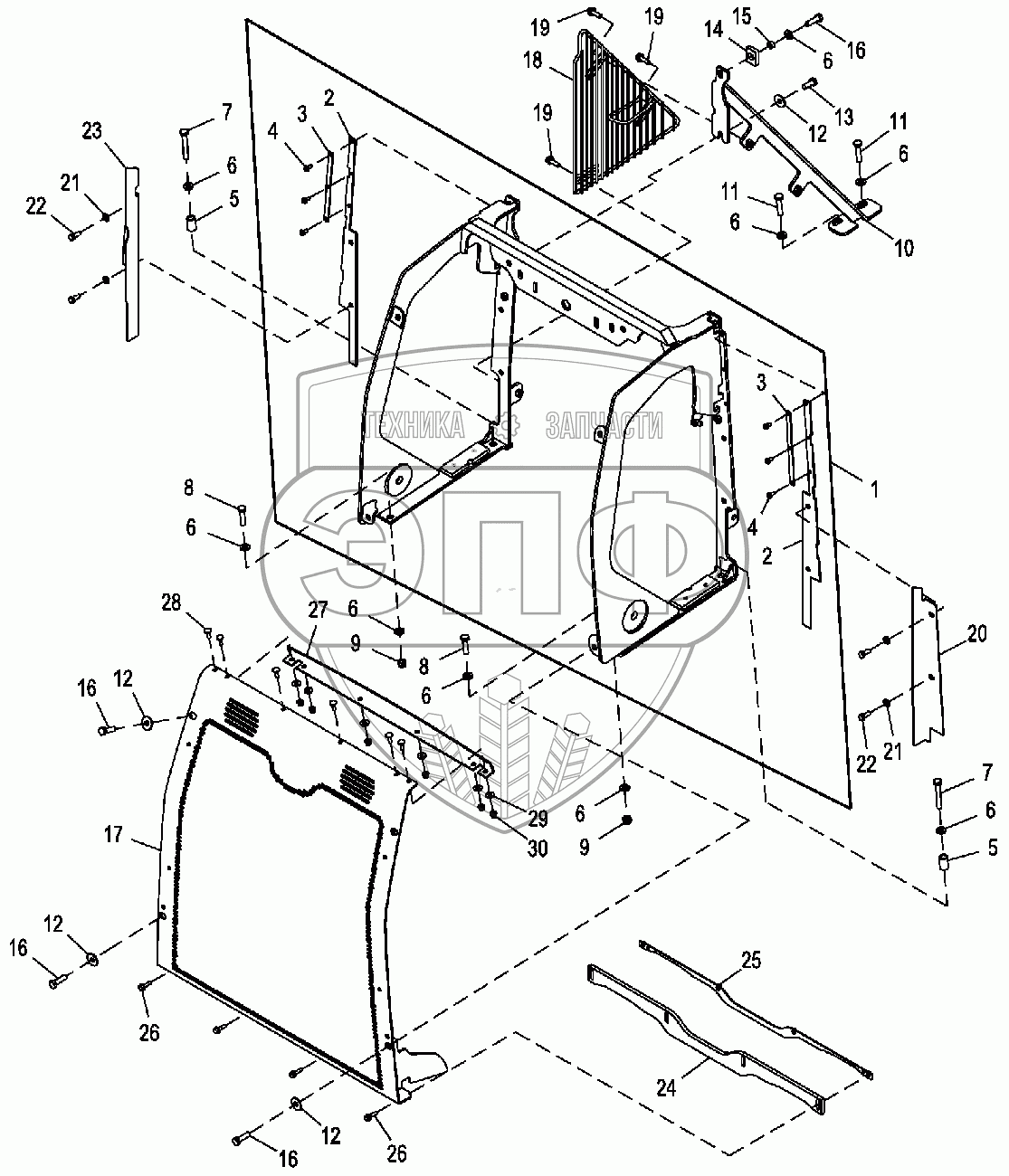 Каталог запасных частей к технике: John Deere JD-315SK(часть 2). Рама решетки