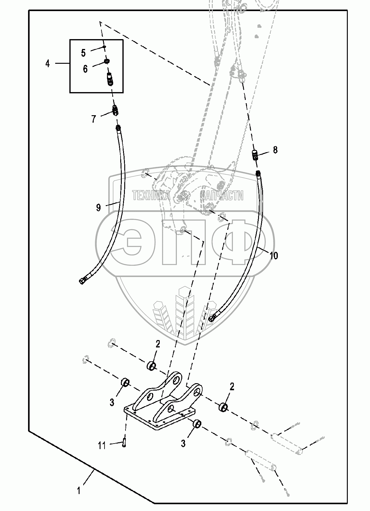 Каталог запасных частей к технике: John Deere JD-325SK. Интерфейсный адаптер молота обратной лопаты