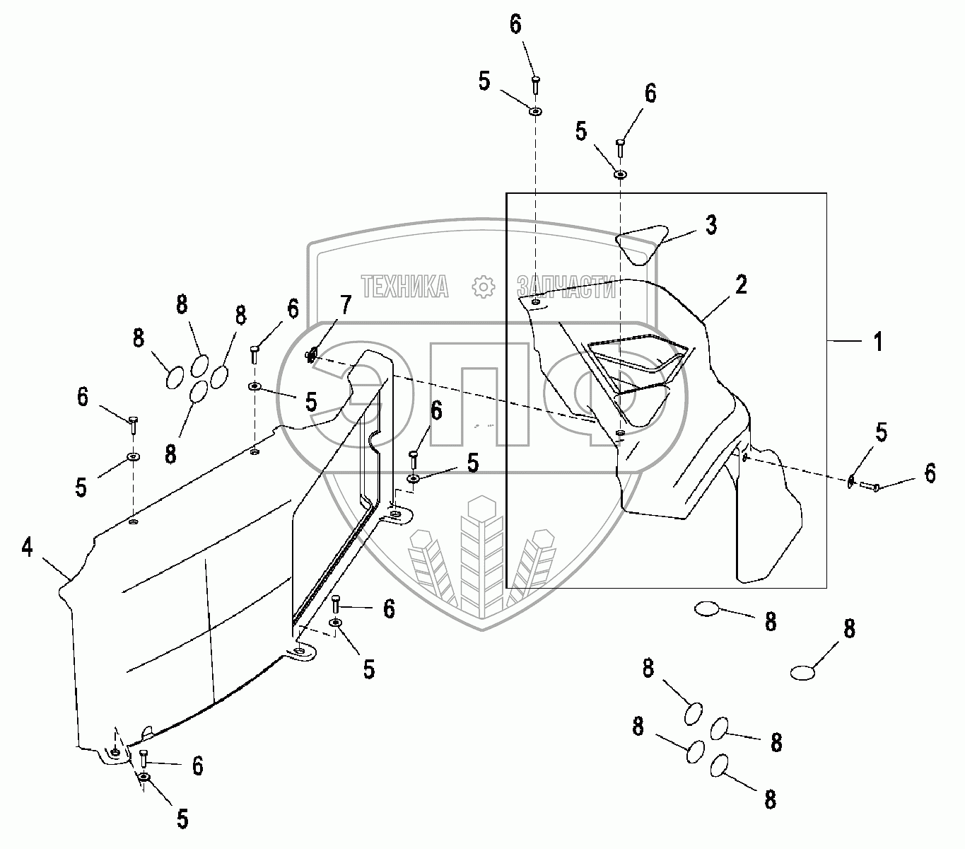Каталог запасных частей к технике: John Deere JD-325SK. Крышки правой консоли кабины