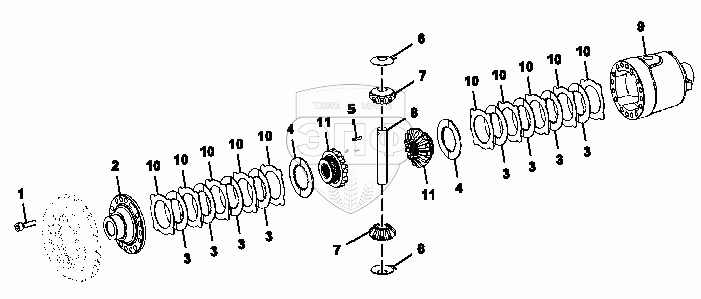 Каталог запасных частей к технике: John Deere JD-325SK. Самоблокирующийся дифференциал, передний мост