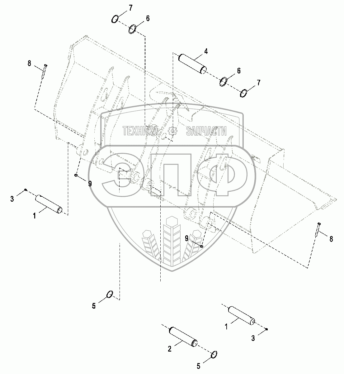 Каталог запасных частей к технике: John Deere JD-325SK. Штифты ковша погрузчика
