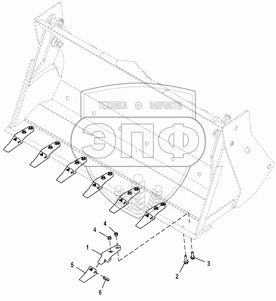 Каталог запасных частей к технике: John Deere JD-325SK. Зубья универсального ковша погрузчика
