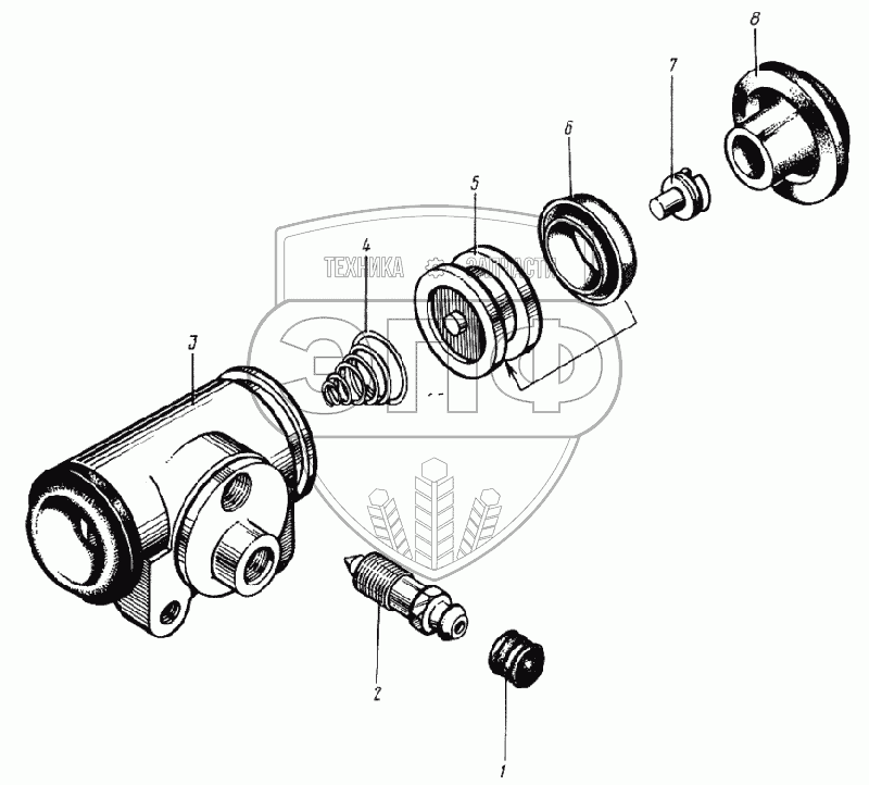 Каталог запасных частей к технике: Канаш-электрокар ЭП-2014. Цилиндр колесный 12-3502040