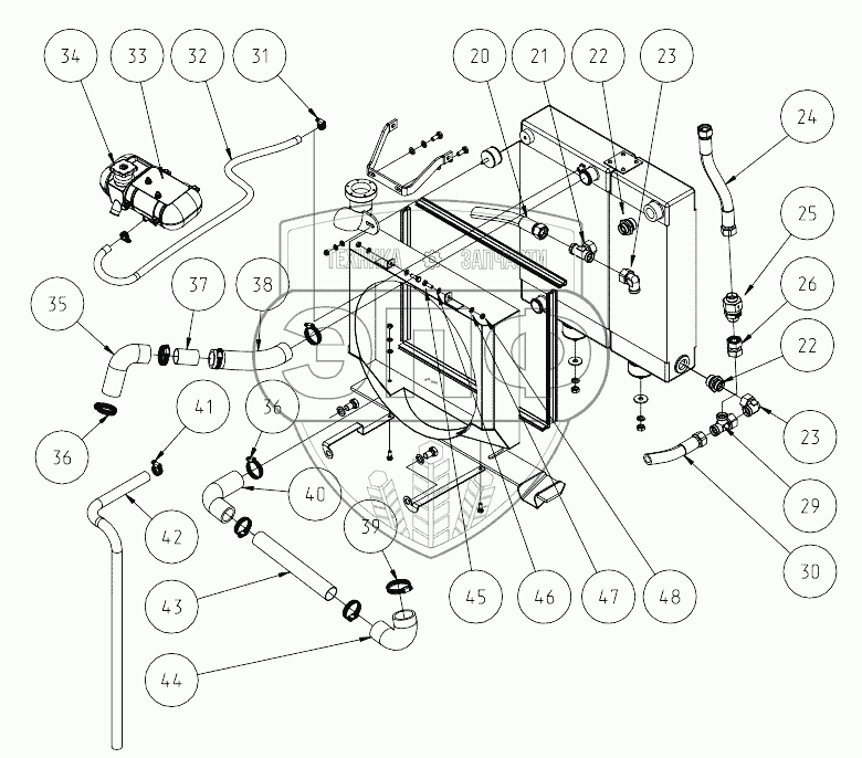 Каталог запасных частей к технике: КЭМЗ ANT1000. Теплообменник комбинированный