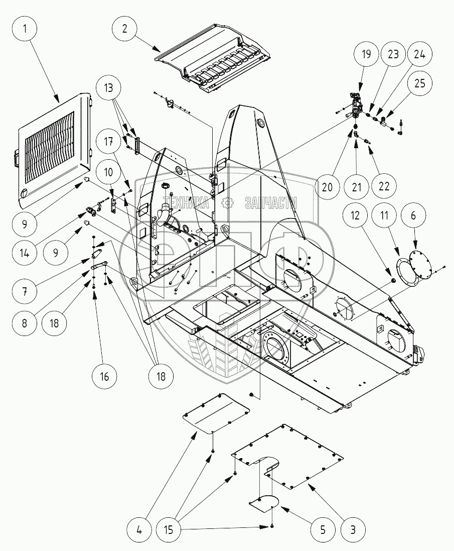 Каталог запасных частей к технике: КЭМЗ ANT1000. Установка двери, капота