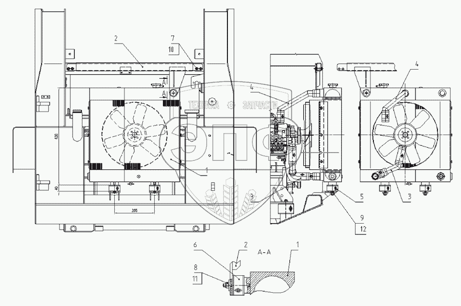 Каталог запасных частей к технике: КЭМЗ ANT750. Установка холодильника 2-02257