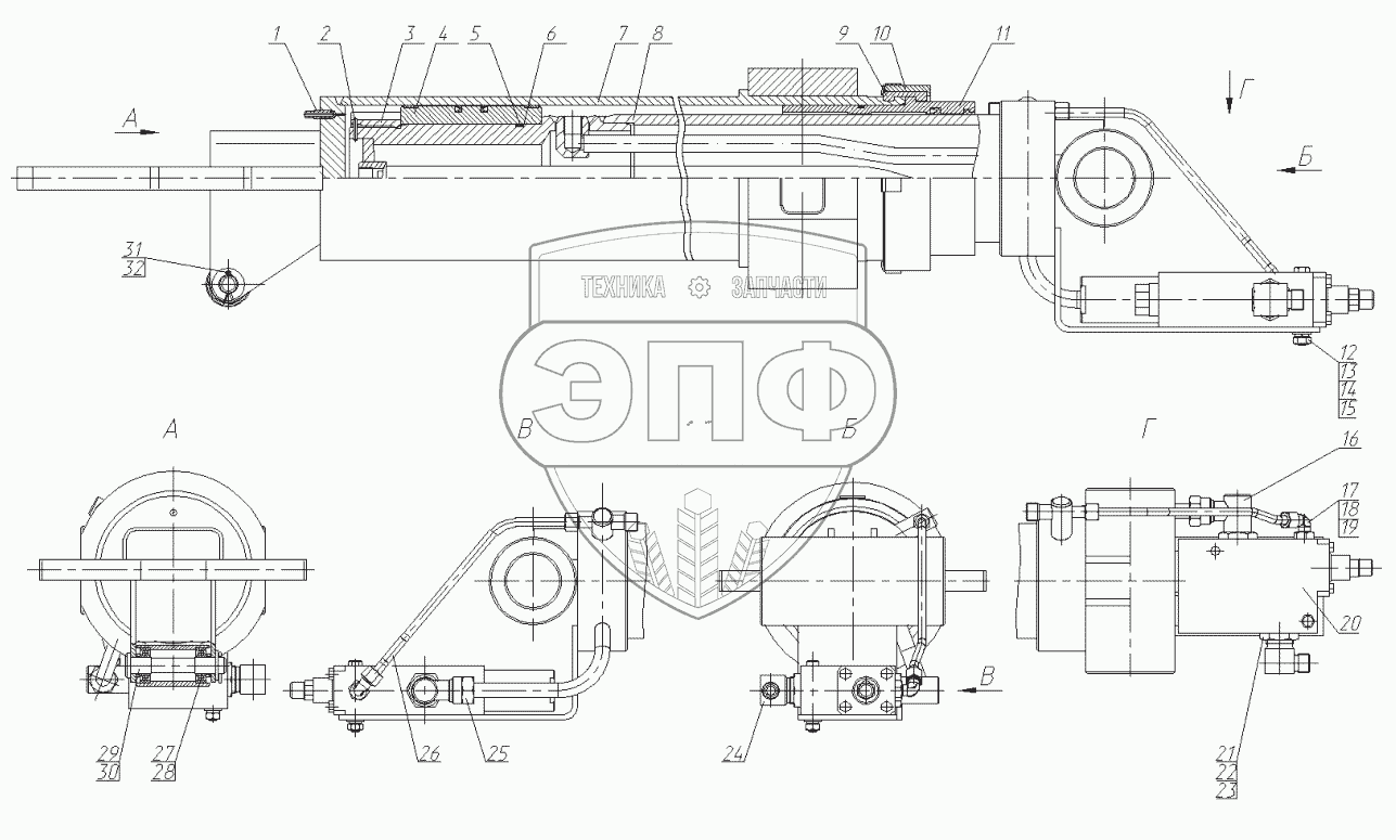 Каталог запасных частей к технике: ККЗ КС-6476. ГИДРОЦИЛИНДР Ц-160.770.80.000