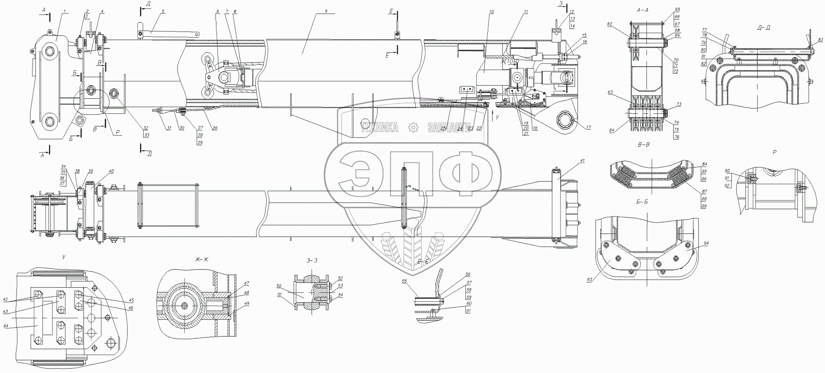 Каталог запасных частей к технике: Клинцовский автокрановый завод КС-55713-1К. Стрела