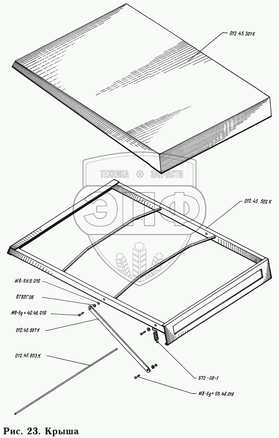 Каталог запасных частей к технике: КМЗ-012. Крыша 012.45.500К
