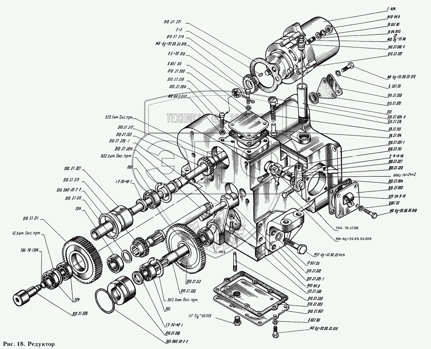 Каталог запасных частей к технике: КМЗ-012. Редуктор 010.37.030-1