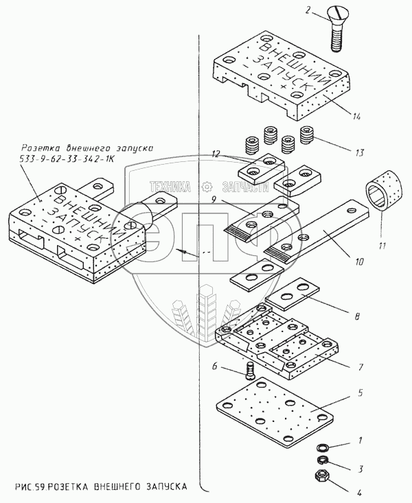 Каталог запасных частей к технике: КМЗ МКСМ-800. Розетка внешнего запуска