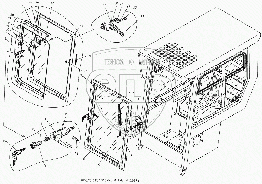 Каталог запасных частей к технике: КМЗ МКСМ-800. Стеклоочиститель и дверь