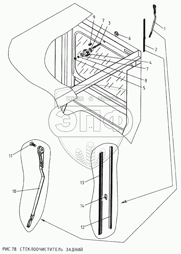 Каталог запасных частей к технике: КМЗ МКСМ-800. Стеклоочиститель задний
