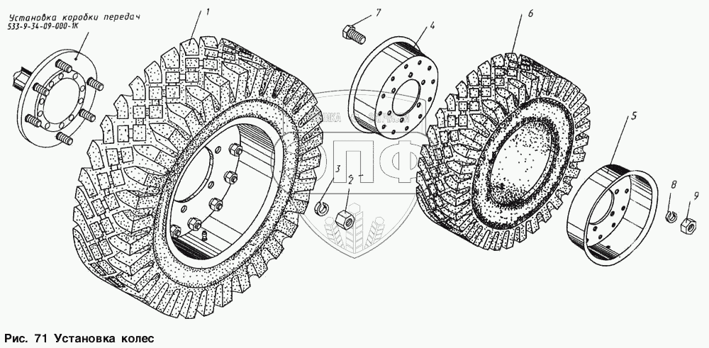 | 1 | 533-9-62-79-009-1К | Колесо с шиной | Нет на складе | |