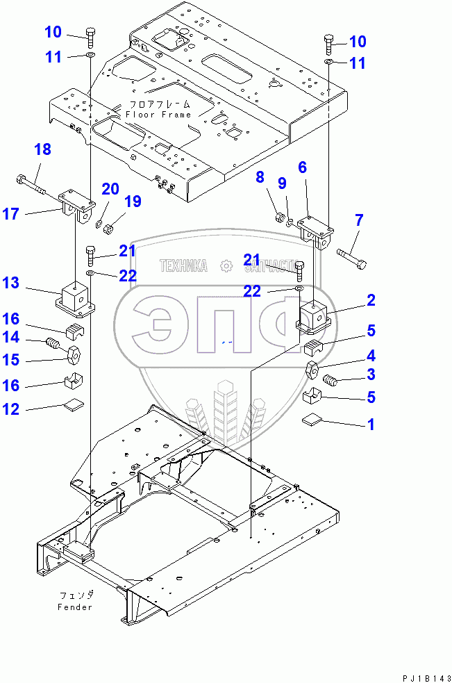 Каталог запасных частей к технике: Komatsu D155C-1. CAB MOUNTING