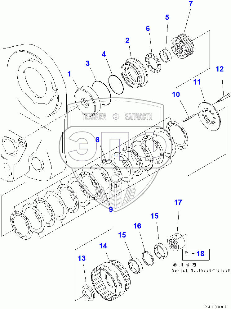 Каталог запасных частей к технике: Komatsu D155C-1. WINCH CLUTCH (2/3)