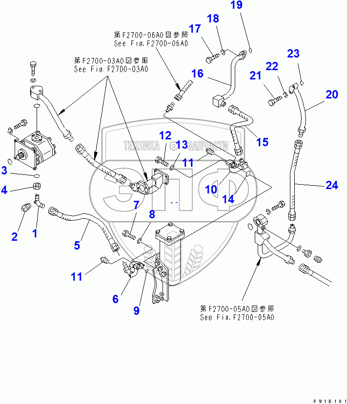 Каталог запасных частей к технике: Komatsu D155C-1D. TORQFLOW TRANSMISSION PIPING