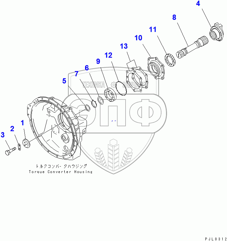 Каталог запасных частей к технике: Komatsu D155C-1D. TORQUE CONVERTER OUTPUT