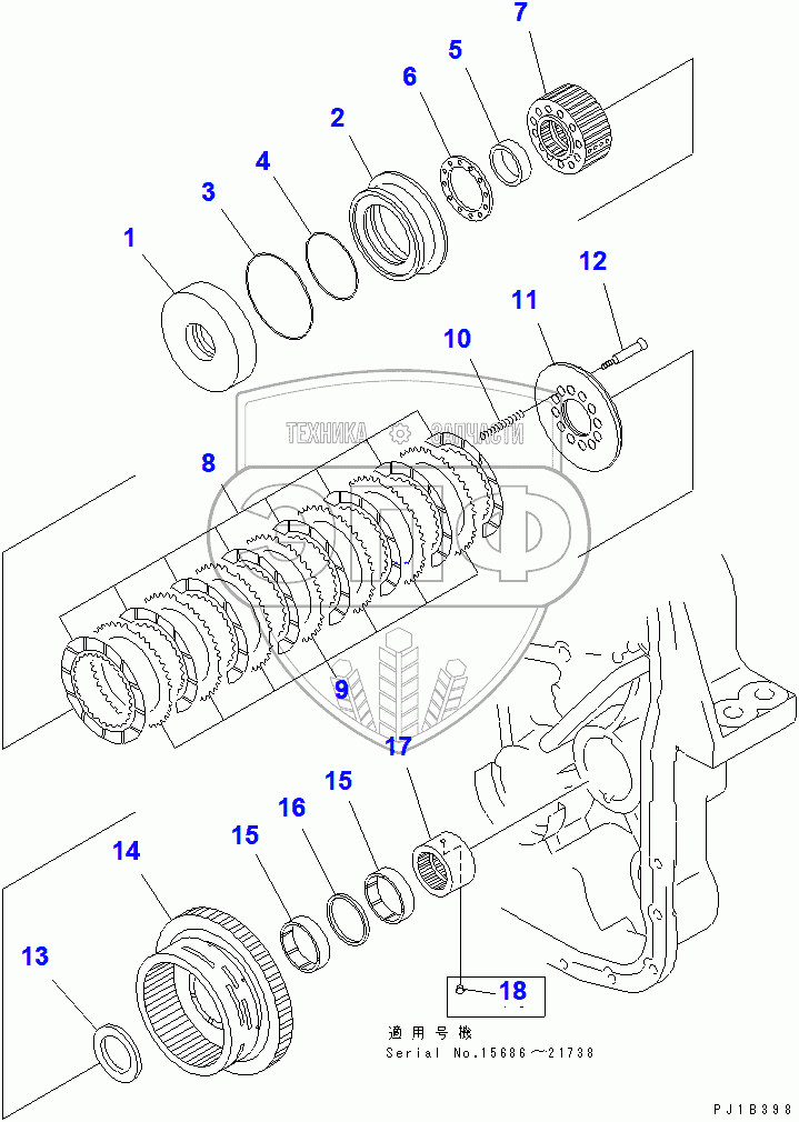 Каталог запасных частей к технике: Komatsu D155C-1P. WINCH CLUTCH (3/3)