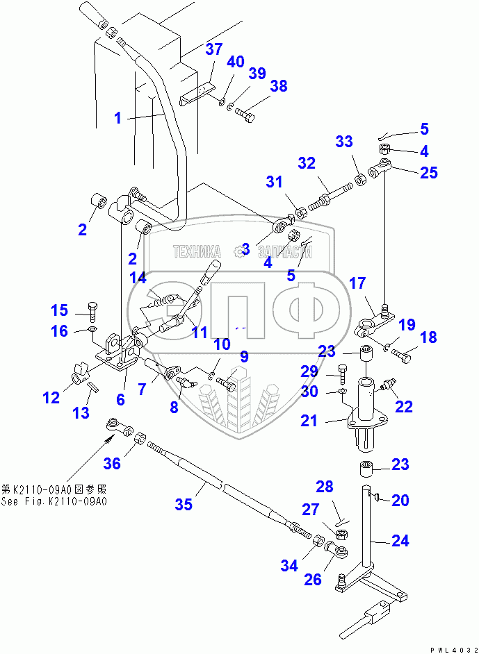Каталог запасных частей к технике: Komatsu D355C-3. BOOM CONTROL LEVER
