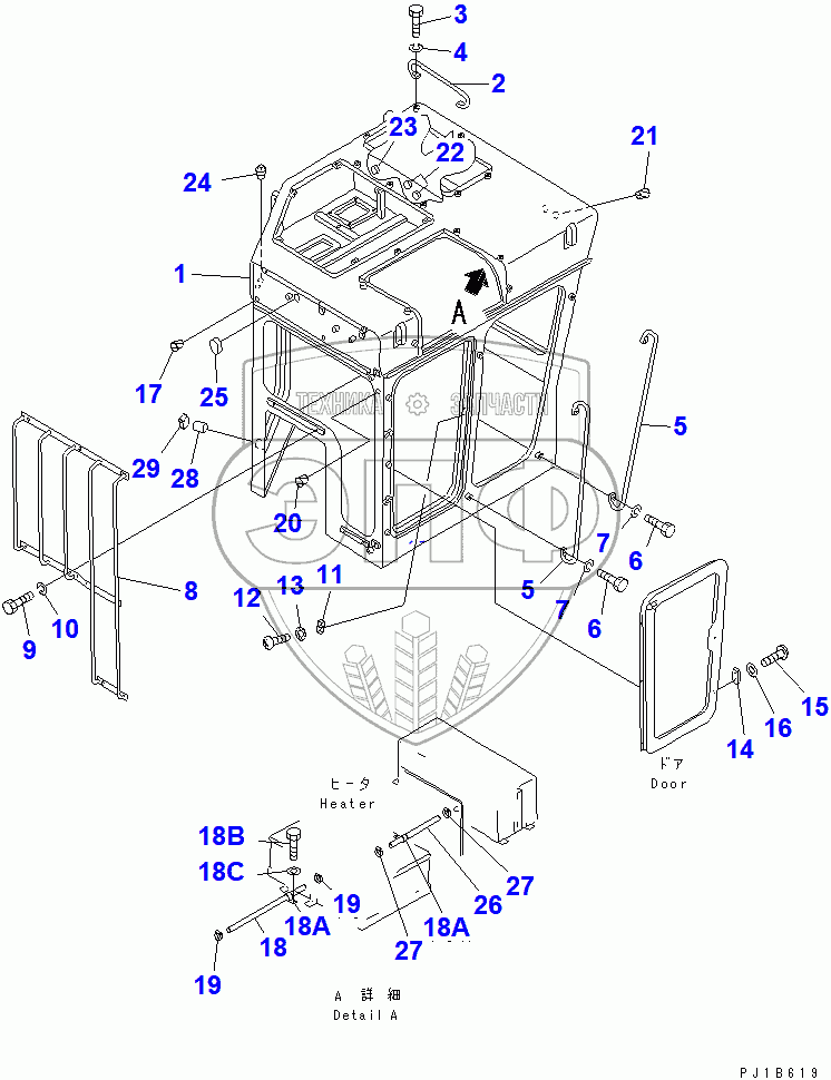 Каталог запасных частей к технике: Komatsu D355C-3. CAB (BODY)(14404-)