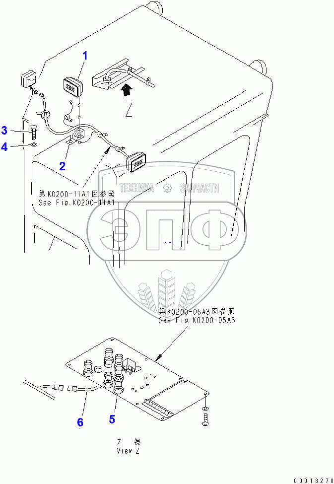 Каталог запасных частей к технике: Komatsu D355C-3. CAB (FOG LAMP)