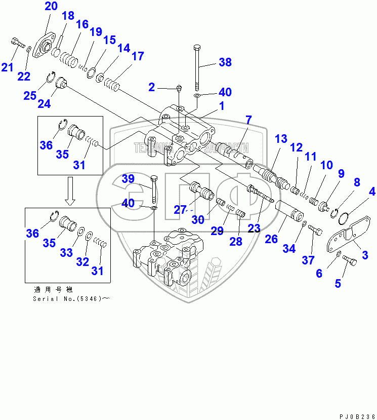 Каталог запасных частей к технике: Komatsu D355C-3. CONTROL VALVE (UPPER)