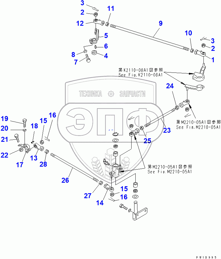 Каталог запасных частей к технике: Komatsu D355C-3. GEAR SHIFT LINKAGE(14413-)