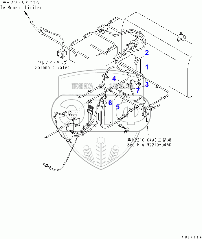 Каталог запасных частей к технике: Komatsu D355C-3. HORN SWITCH WIRING HARNESS