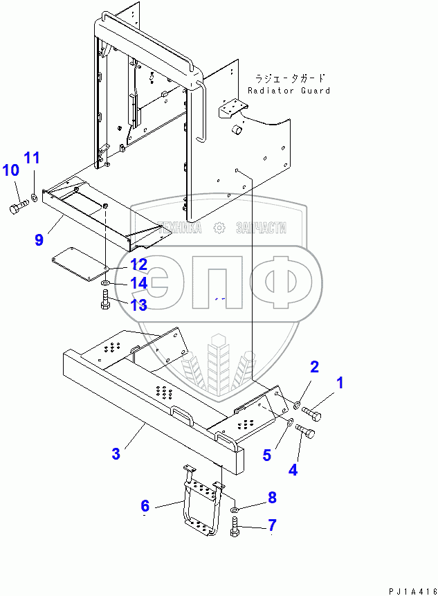 Каталог запасных частей к технике: Komatsu D355C-3. RADIATOR GUARD RELATED
