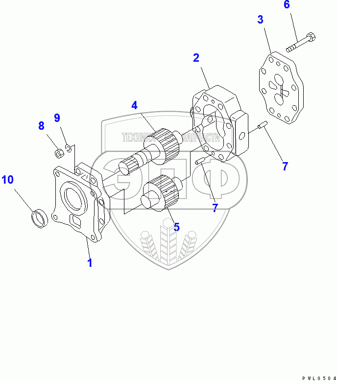 Каталог запасных частей к технике: Komatsu D355C-3. STEERING PUMP(14413-)