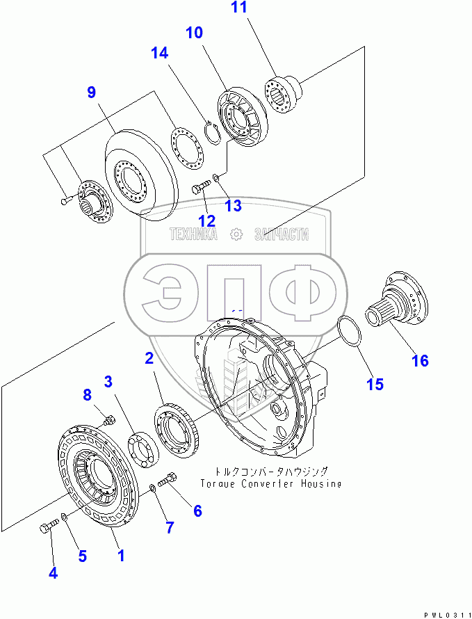 Каталог запасных частей к технике: Komatsu D355C-3. TORQUE CONVERTER BARE