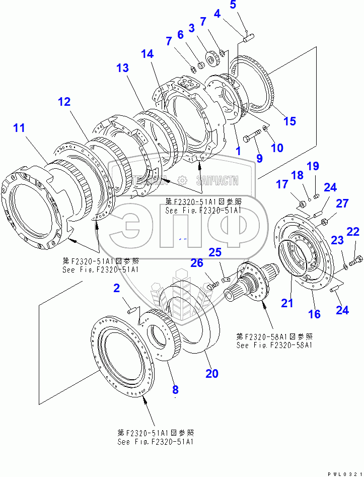 Каталог запасных частей к технике: Komatsu D355C-3. TRANSMISSION CARRIER (2/3)