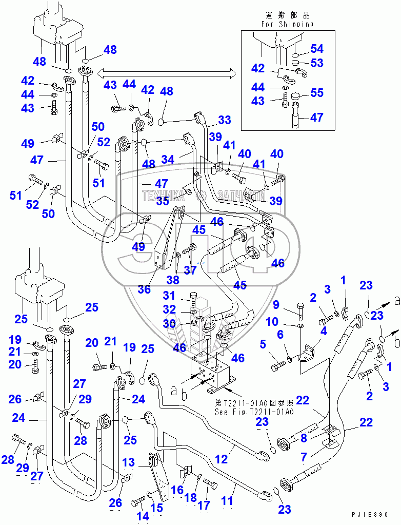 Каталог запасных частей к технике: Komatsu D355C-3. COUNTERWEIGHT PIPING (2/2)